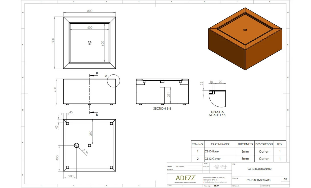 De vierkante cortenstalen watertafel van Adezz is 0,80 meter lang en 0,80 meter breed. De cortenstalen watertafel van Adezz heeft een warme en natuurlijke uitstraling door de roestbruine kleur. Deze ontstaat door een natuurlijk roestproces. De oxidelaag zorgt voor een fraaie kleur en beschermt het onderliggende metaal. Deze mooie watertafel is een stijlvolle toevoeging in uw tuin!