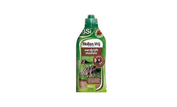 Mollen zijn vrijwel blind maar hebben daarentegen een uitstekend reukvermogen. Het BSI Mollen vrij strooigranulaat verdrijven mollen door daarop in te spelen. Het strooigranulaat bestaat uit sterk geurende korrels op basis van look-soorten zoals knoflook. Maak elke m² met een schep een smalle, verticale opening in het gazon. Strooi in elke opening één maatdop en trap de opening weer voorzichtig dicht. De verpakking bevat 600 gram en is voldoende voor 100m². BSI Mollen vrij strooigranulaat is 3-4 maanden werkzaam.