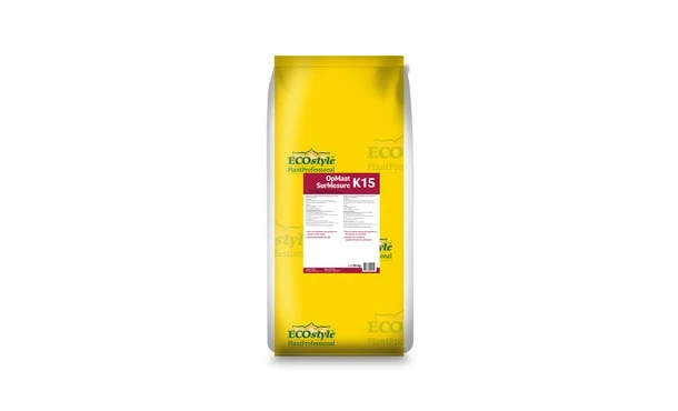 OpMaat K15 van ECOstyle is een meststof die rijk is aan kalium. Ideaal voor het oplossen van een kaliumtekort in de bodem. Toegevoegde micro-organismen spelen een belangrijke rol in de optimalisatie van de bodemvitaliteit, het bodemleven en de conditie van de plant.
